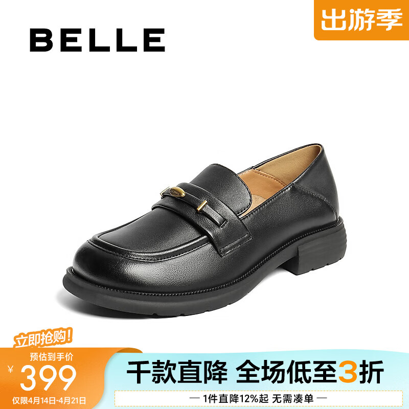 百丽(Belle)英伦风乐福鞋女商场同款羊皮舒适便士乐福E1N1DCA5 黑色 37 (235mm)