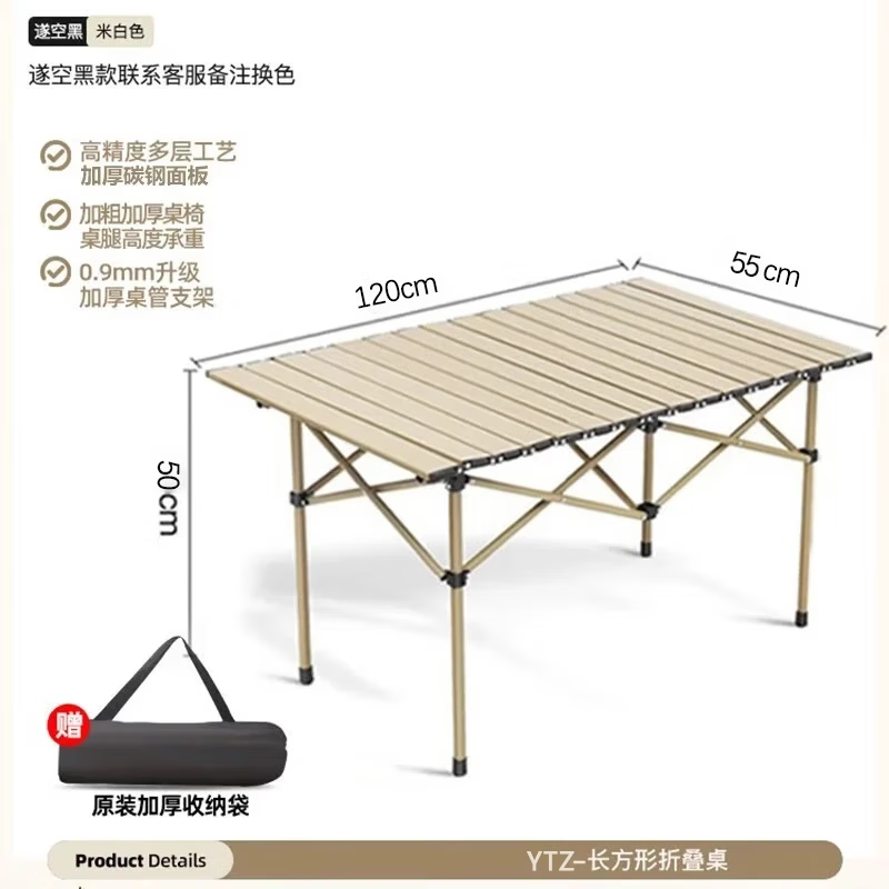 野徒者户外折叠椅露营椅子躺椅便携折叠月亮椅小凳子折叠凳钓鱼凳 米黄色【超大号桌】 出口质量加粗