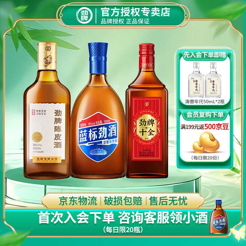 劲牌劲酒 陈皮酒40度 50mL/500mL 5味道地药材配制酒养生酒送礼送长辈 40度 500mL 1瓶 +蓝标+十全酒