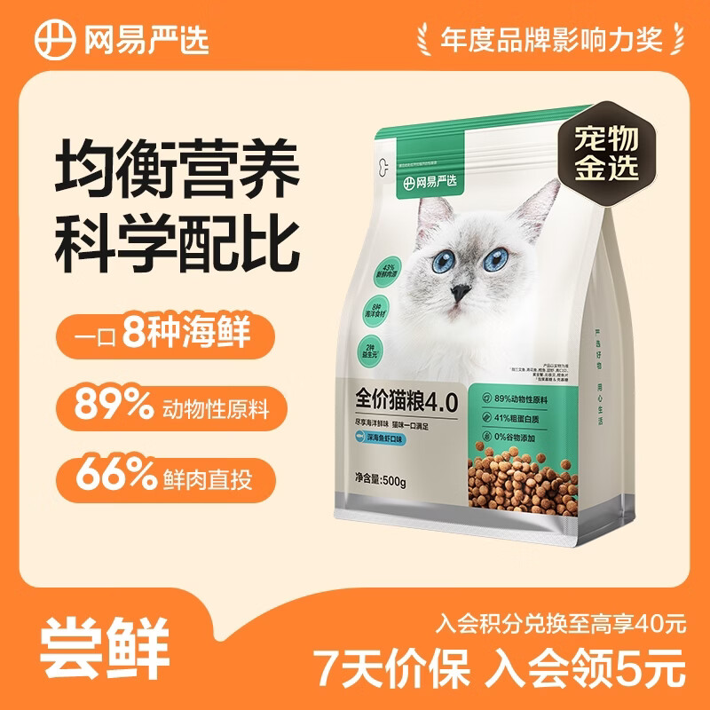 网易严选猫粮【推荐】全价猫粮 幼猫成猫主粮猫咪食品 一口9种肉 4.0升级款深海鱼虾口味 500g*1袋