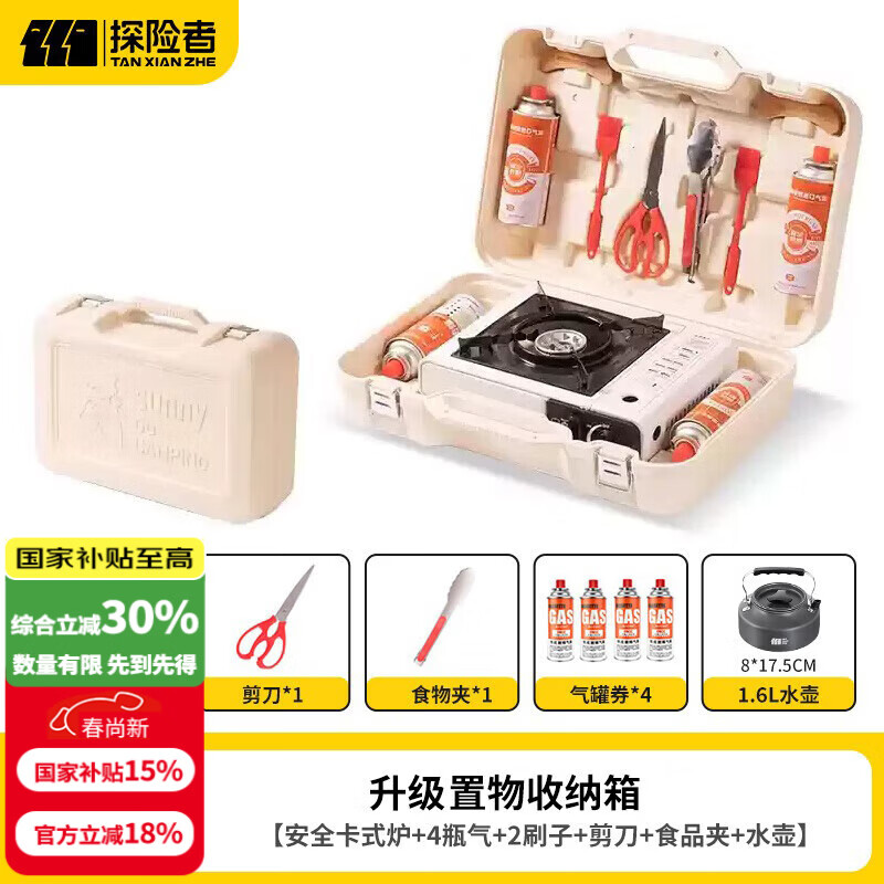 探险者卡式炉户外卡式炉具套装防爆卡磁炉全套带锅烤盘露营野餐烧烤卡斯 炉+全收纳箱+4气券(赠品)+水壶