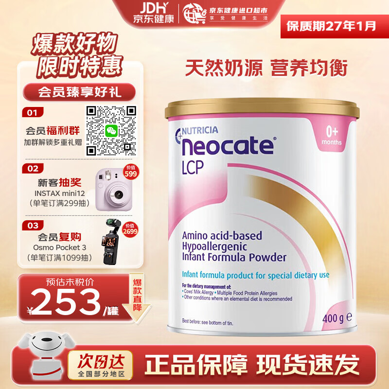 纽康特1+氨基酸配方奶粉澳洲版婴幼儿抗蛋白无乳糖防腹泻拉稀400g 澳洲版LCP1段 (0-12月) 400g*1罐