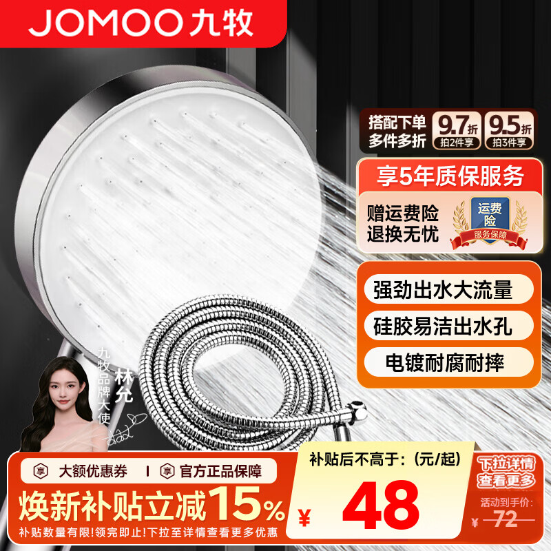 九牧(JOMOO)花洒喷头全套家用增压洗澡淋浴莲蓬头热水器手持淋雨花洒软管套装 增压花洒头S260011+1.5软管