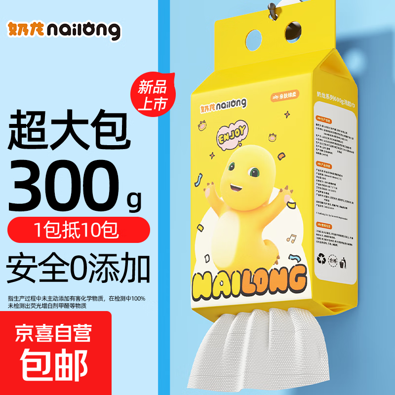 【奶龙联名款】一次性洗脸巾婴儿绵柔巾干湿两用棉柔巾300g加厚 【80g/㎡超厚悬挂款】珍珠纹120抽*2提