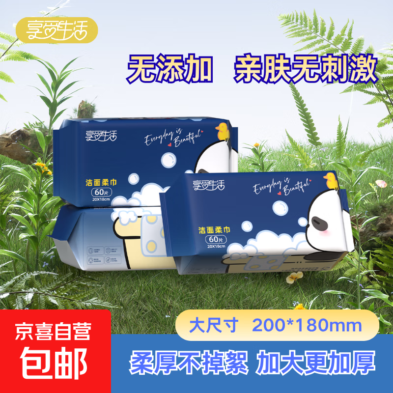 享受生活洗脸巾60抽*3包一次性绵柔巾洁面巾加大加厚抽取式擦脸巾 【加大加厚】珍珠纹60抽3包