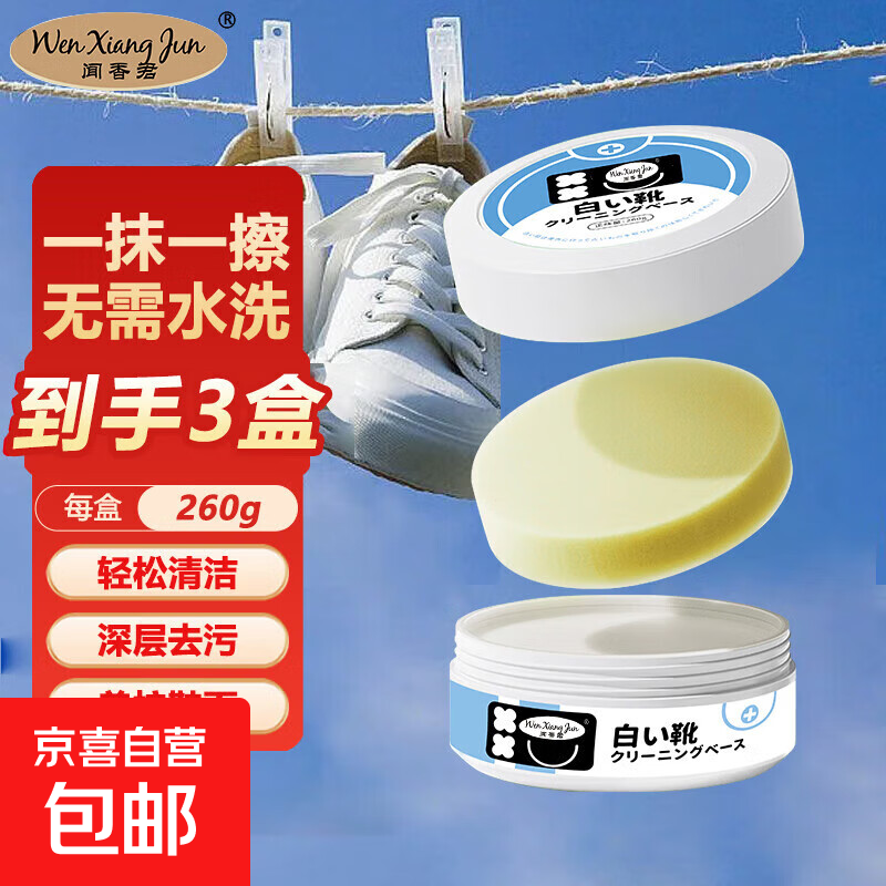 小白鞋洗鞋清洁剂多功能清洁膏260g去黄去污免水洗擦鞋神器 260g*3盒