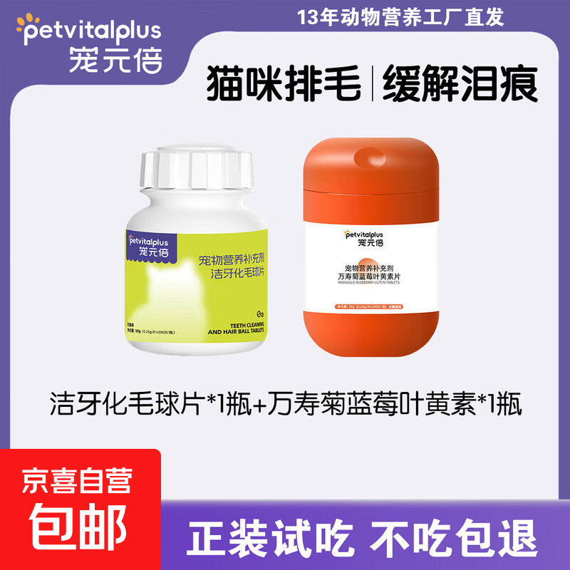 【养猫必备】猫咪化毛片毛球吐毛温和排毛保护肠道健康新手养宠 【猫咪排毛+缓解泪痕】化毛片*1+叶黄素*1