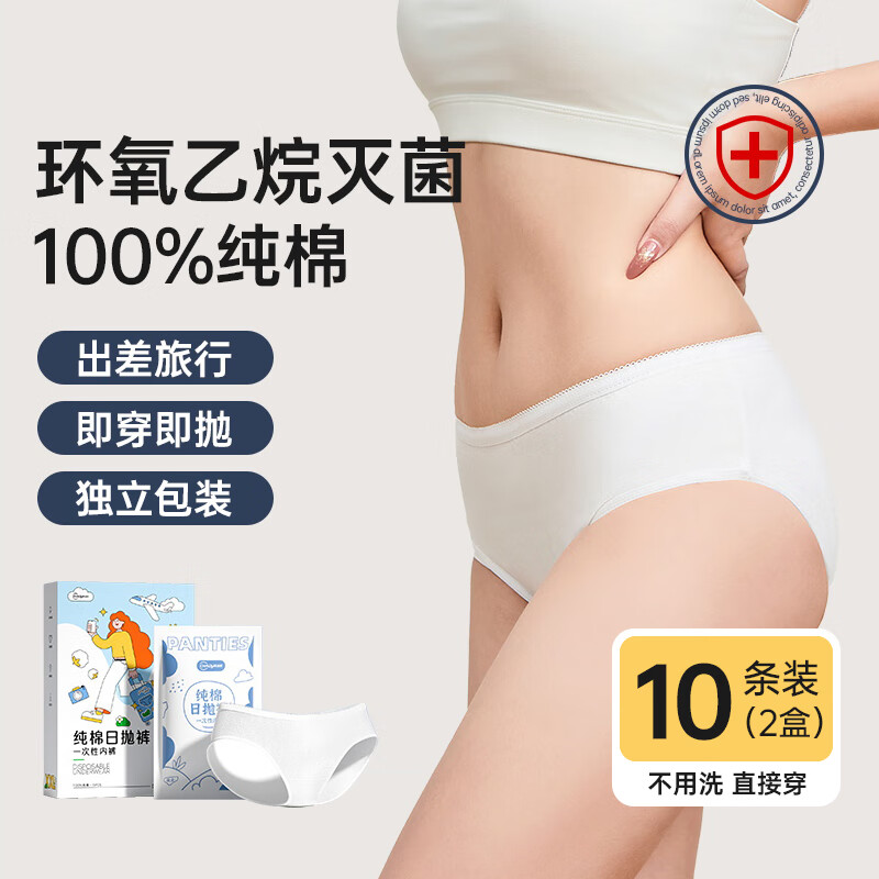 超亚EO灭菌一次性内裤女士独立装免洗孕产妇大码旅行出差户外日抛裤 10条(纯棉更舒适)盒装【纯棉灭菌型】 2XL[建议120斤-140斤]