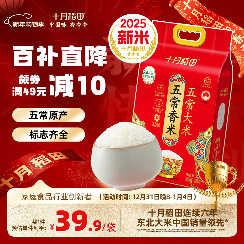 十月稻田【2025年新米】大米 五常香米 5kg*1袋