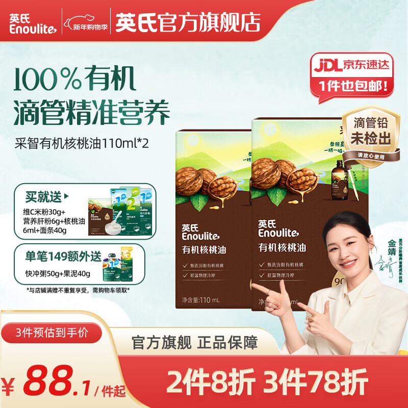 英氏采智有机核桃牛油果亚麻籽油儿童热炒凉拌食用油组合油 【实惠装】核桃油110ml*2瓶