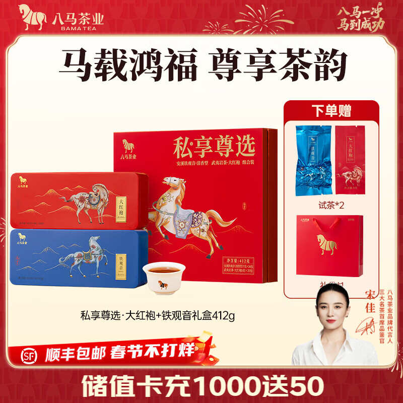 八马茶业 金骏眉/大红袍/肉桂/单枞/铁观音/白茶/茉莉花茶 茶叶自己喝 【铁观音+大红袍】礼盒装412g