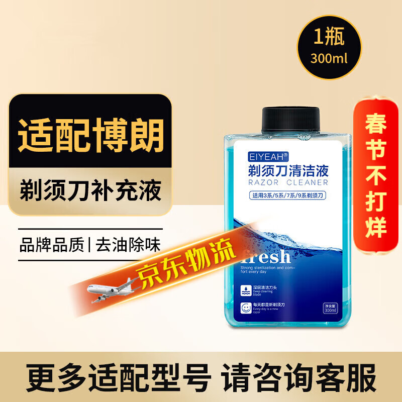 斯程 适配博朗电动剃须刀清洗液CCR4刀头清洁液Series3 5 7 8 9系刮胡刀清洁中心替换洁剂盒通用 适配博朗剃须刀清洗液1瓶300ML