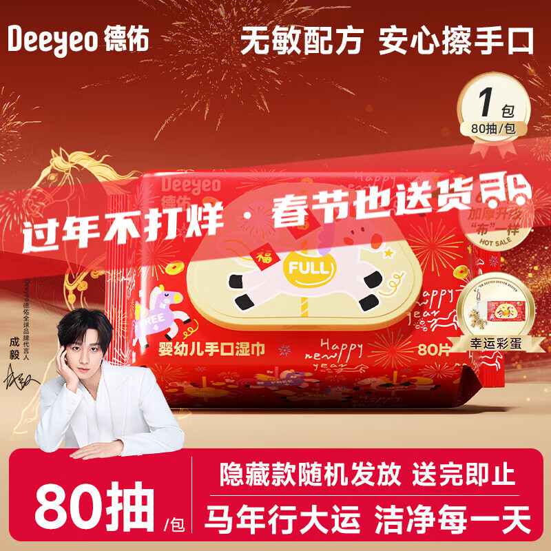 德佑湿巾婴儿湿巾手口湿纸巾生儿湿巾宝宝手口屁屁专用儿童湿巾 【福马临门】婴幼儿手口湿巾 80抽 1包 限定款