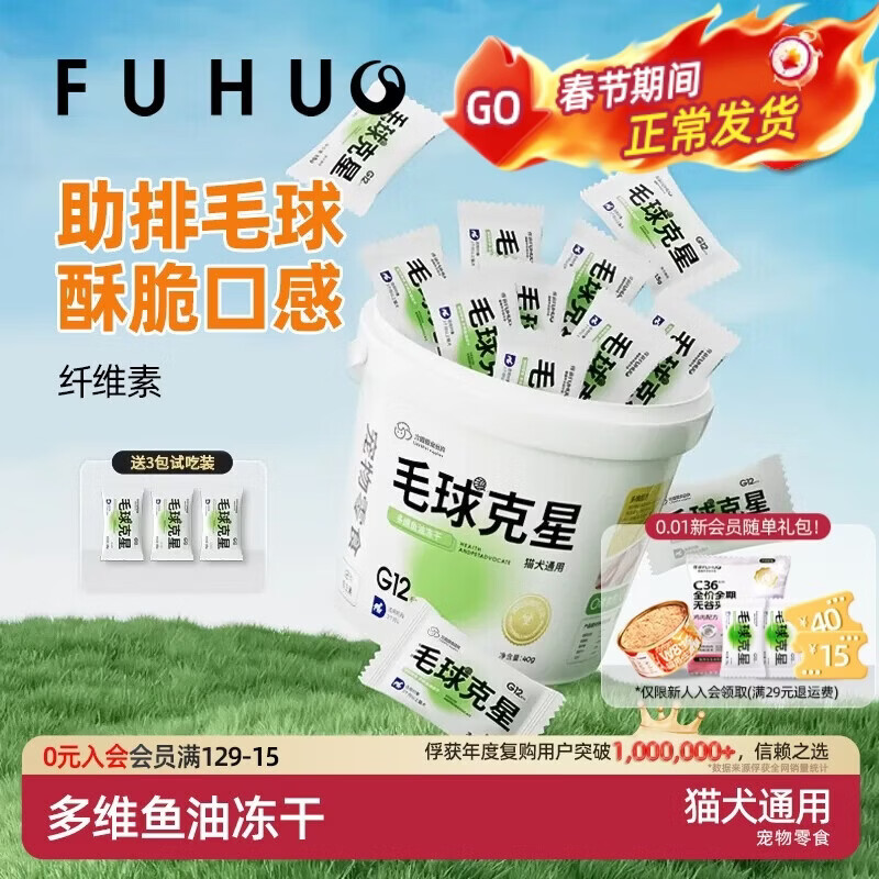 俘获G12猫咪毛球克星猫零食云草片杉化去助排毛球维生素鱼油冻干棒 【随“便”排出】1桶+3包(62颗)