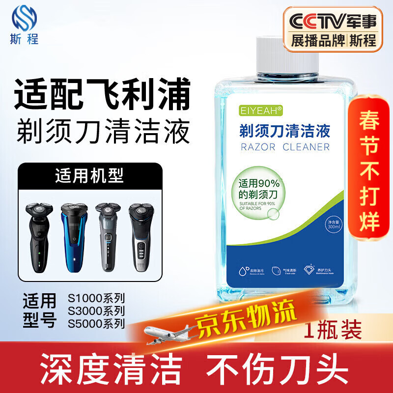 斯程 适配飞利浦电动剃须刀清洗液Series5000 S7000 S8000 S9000刮胡刀刀头清洁液通用JC302替换配件 适配飞利浦剃须刀清洗液1瓶300ML京东物流发货