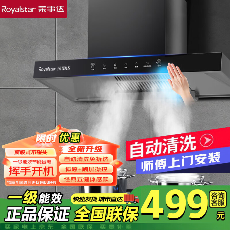 荣事达油烟机家用抽油烟机大吸力顶吸式吸油烟机一级能效欧式出租房烟机燃气灶套装品牌补贴以旧换新 700宽体感触屏+自动清洗+上门安装
