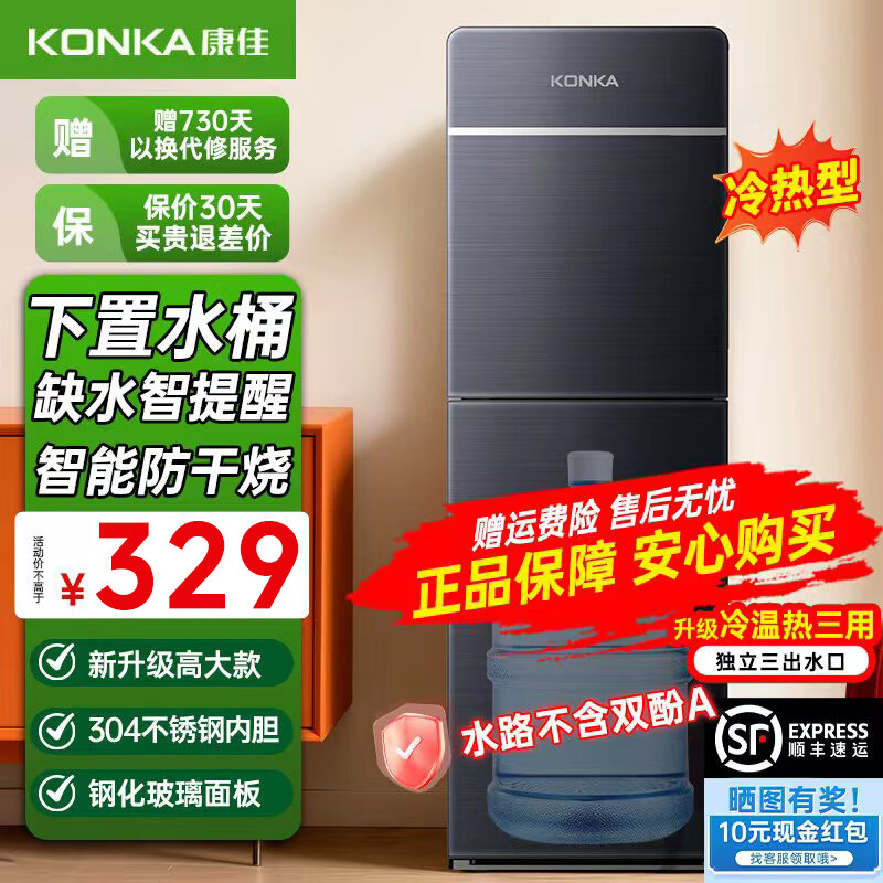 康佳(KONKA)饮水机家用下置式桶装水温热型/冷热型快速加热一体机2025新款下置水桶饮水器 【品牌旗舰】加高加厚童锁双门防尘 制冷制热型