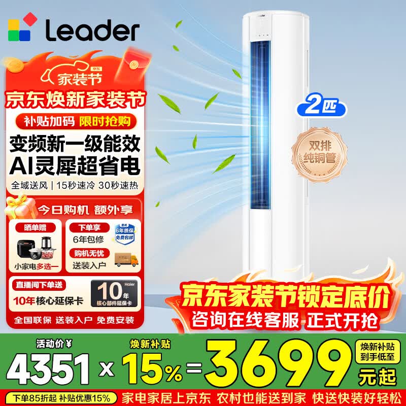 海尔空调出品大3匹变频圆柱立式柜机超省电家用空调新一级能效冷暖节能WIFI自清洁冷暖 补贴15% 超省电se 2匹 【26年新品】大双排铜管大风量