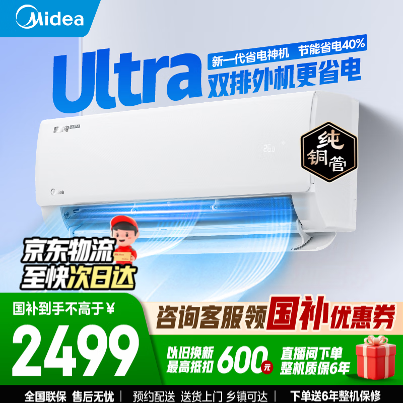 美的(Midea)空调挂机1匹/1.5匹卧室挂式2匹空调酷省电二代一级能效变频冷暖两用官方旗舰店以旧换新国家补贴 酷省电Ultra 一级能效 大1.5匹 【首发新品】