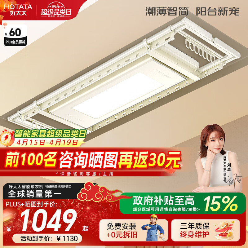 好太太(Hotata)电动晾衣架智能隐形超薄小阳台米白晾衣架升降晾衣杆家用 D-3082:超薄大屏照明+衣被同晒