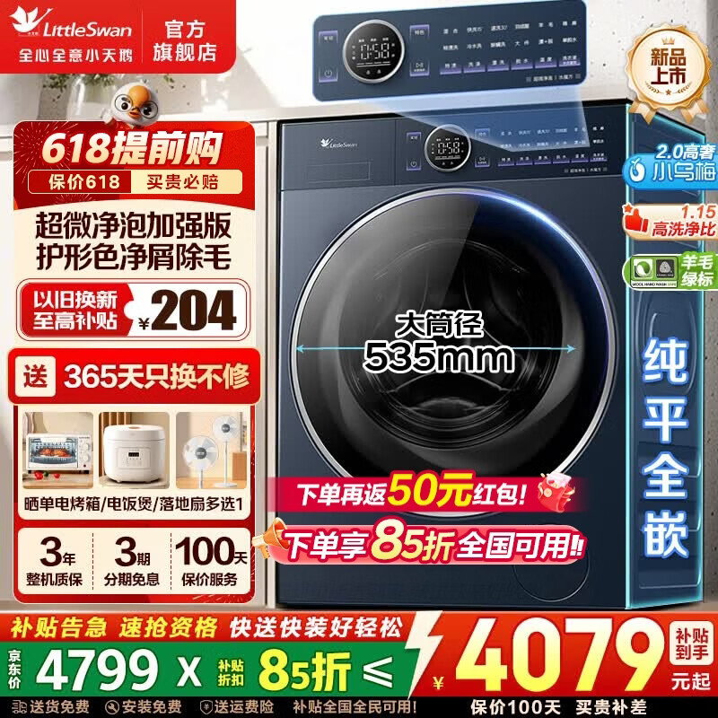 小天鹅(LittleSwan)滚筒洗衣机 小乌梅2.0超薄全嵌大容量全自动超微净泡水魔方洗脱/洗烘一体烘干 智能投放 羊毛绿标 【小乌梅2.0高奢版非烘干】纯平1.15洗净比