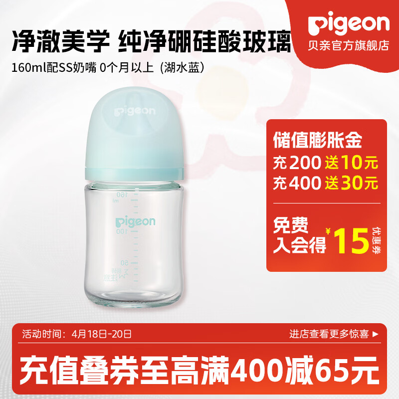 贝亲奶瓶 婴儿奶瓶 新生儿防胀气奶瓶 玻璃宽口径仿母乳亲喂感 160ml配SS (湖水蓝)0-3个月