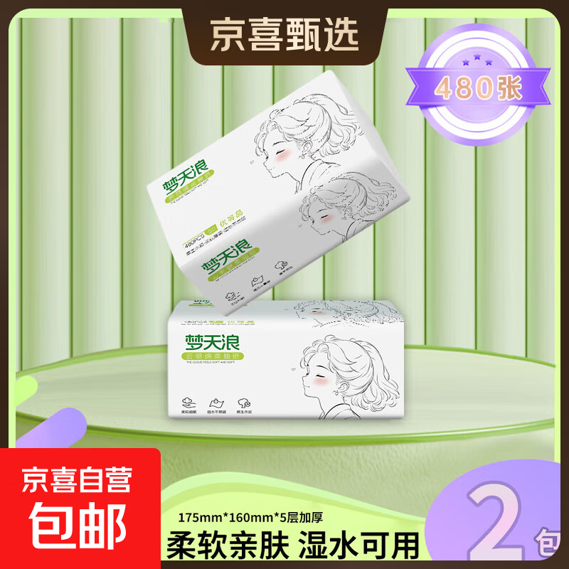 梦天浪【优等品】女孩系列480张四边压花大包家用原木抽纸面巾纸 【新人福利】 5层 480张*2包