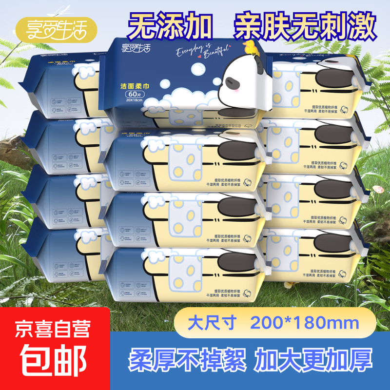 享受生活洗脸巾60抽*3包一次性绵柔巾洁面巾加大加厚抽取式擦脸巾 【囤货特惠】珍珠纹60抽12包