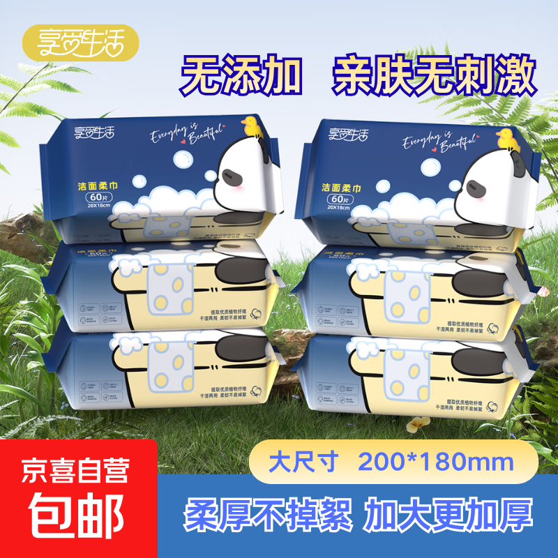 享受生活洗脸巾60抽*3包一次性绵柔巾洁面巾加大加厚抽取式擦脸巾 【加大加厚】珍珠纹60抽6包