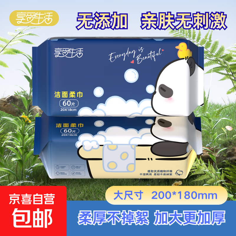 享受生活洗脸巾60抽*3包一次性绵柔巾洁面巾加大加厚抽取式擦脸巾 【加大加厚】珍珠纹60抽2包