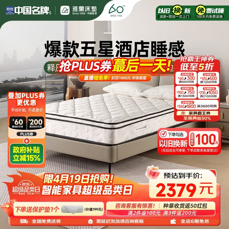 雅兰金梦豪尊享版2.0 透气乳胶记忆棉 独袋弹簧床垫 1.5*2米 软硬适中