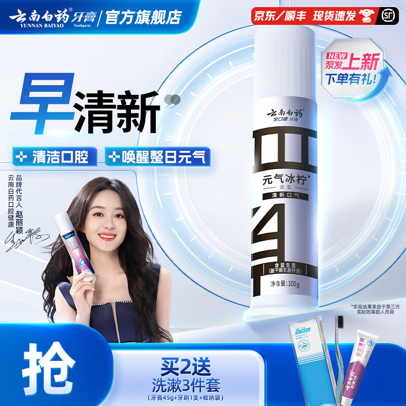 云南白药【赵丽颖推荐】牙膏日用清新夜用护龈清新口气减轻牙龈问题 【早安清新】元气冰柠 100g*1支
