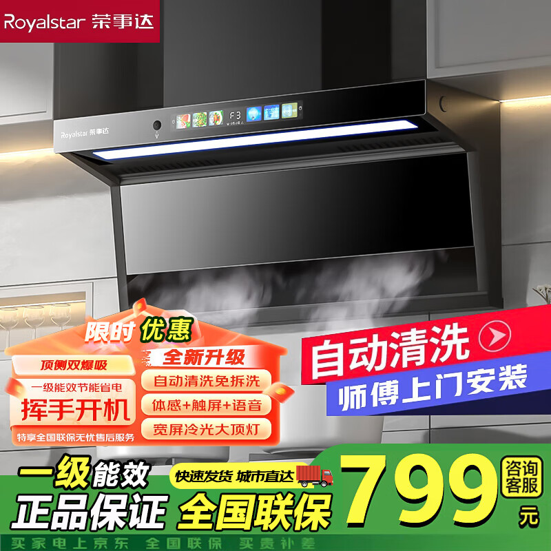 荣事达油烟机家用抽油烟机大吸力吸油烟机顶侧双吸一级能效出租房7字型烟机燃气灶套装品牌补贴以旧换新 旗舰款900宽自动清洁+语音控制+体感彩屏 上门安装+全国联保