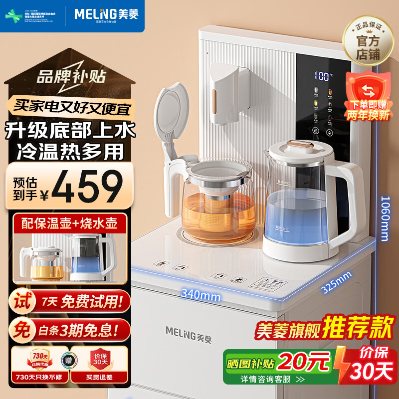 美菱(MeiLing)茶吧机 家用立式温热型饮水机多功能智能遥控茶吧机 高端旗舰【升级底部上水】 制冷制热型