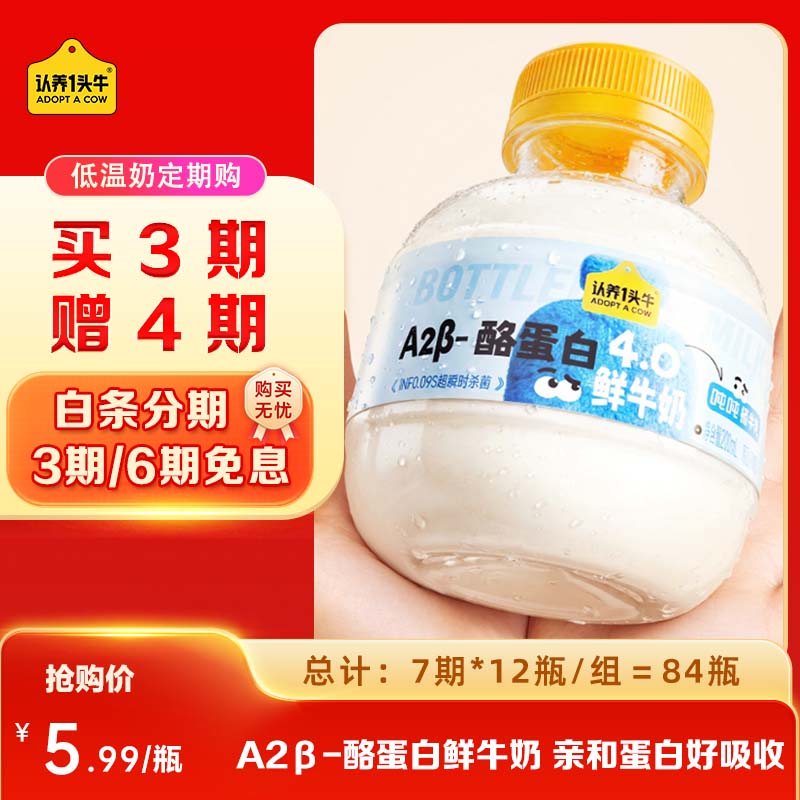 认养一头牛【代言人同款】mini吨吨奶A2β-酪蛋白4.0牛乳鲜牛奶营养儿童牛奶 【划算定期购】mini吨吨200ml*12