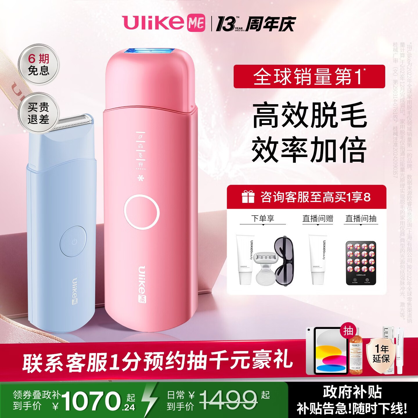 UlikeME【湿脱不加价】政府补贴蓝宝石冰点脱毛仪私处剃毛器女生大学生送男女友生日礼物美容仪 【脱毛新CP】ME粉+电动刮刀京仓直发