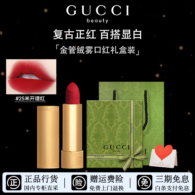 古驰(GUCCI) 口红绒雾哑光208碎花丝润套装唇釉505217生日礼物圣诞礼物送女生 绒雾口红 25#古驰红【礼盒装】