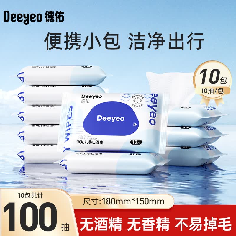 德佑婴儿湿巾小包随身装婴幼儿新生宝宝手口便携擦屁屁湿纸巾学生湿巾 【便携装】 10抽 10包