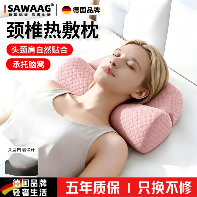 飒望【德国】反牵引颈椎枕头护颈枕睡眠颈椎病深度睡眠专用反弓专用枕 【樱花粉】 放松颈椎 舒适睡眠 A类 单只 【全网热销100W+】颈椎病专用反牵引枕