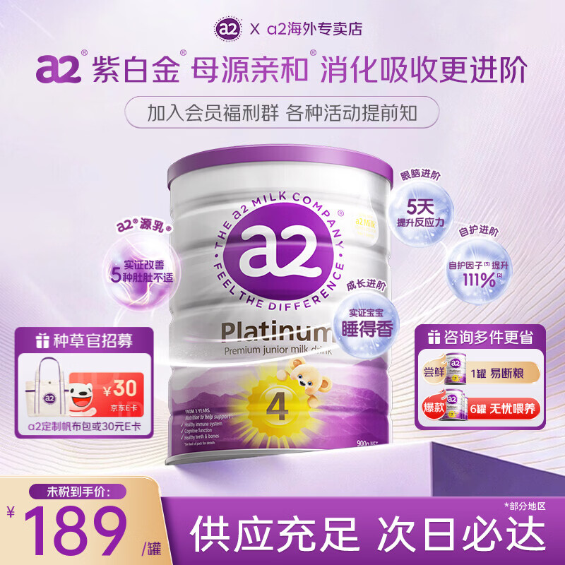 a2奶粉紫白金版 新西兰原装进口婴儿配方奶粉 含天然A2【至初同源】 【转段得现金】4段 900g 1罐 效期至27年10月