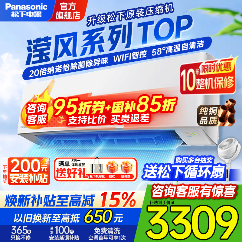 松下(Panasonic)滢风三代1匹/1.5匹空调挂机纯铜管直流变频冷暖纳诺怡除菌家用壁挂式原装压缩机以旧换新补贴 滢风 大1匹 一级能效滢风三代 ZY26K410Q