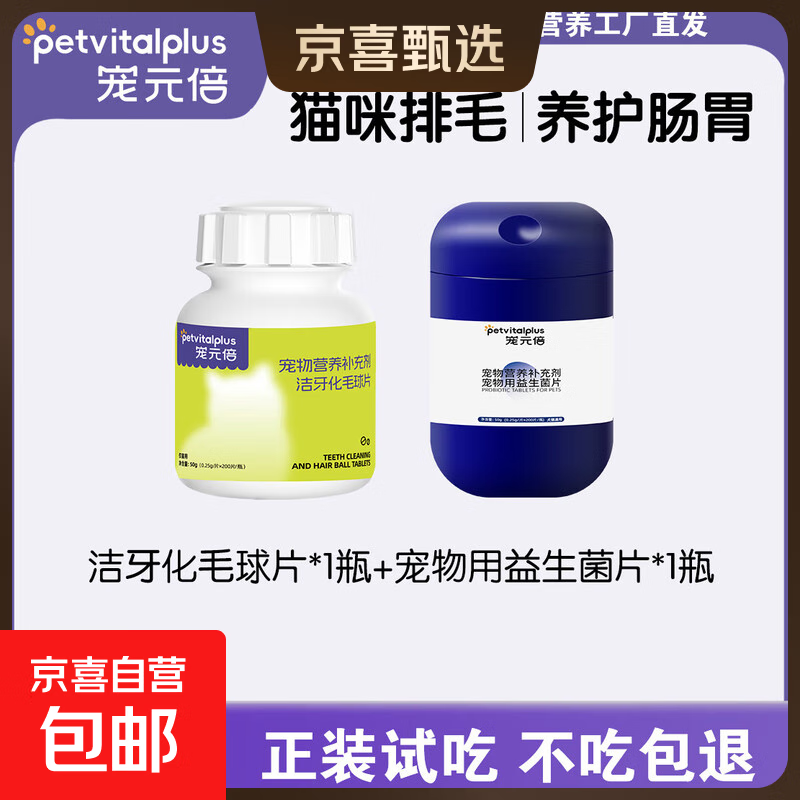 【养猫必备】猫咪化毛片毛球吐毛温和排毛保护肠道健康新手养宠 【猫咪排毛+养护肠胃】化毛片*1+益生菌*1