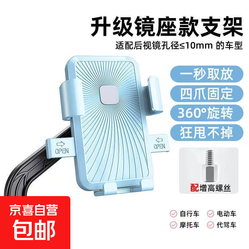 【京东包邮】电动车摩托车可旋转手机支架导航神器外卖骑手车载便携防震装备 天空蓝【重力感应/升级镜座款】