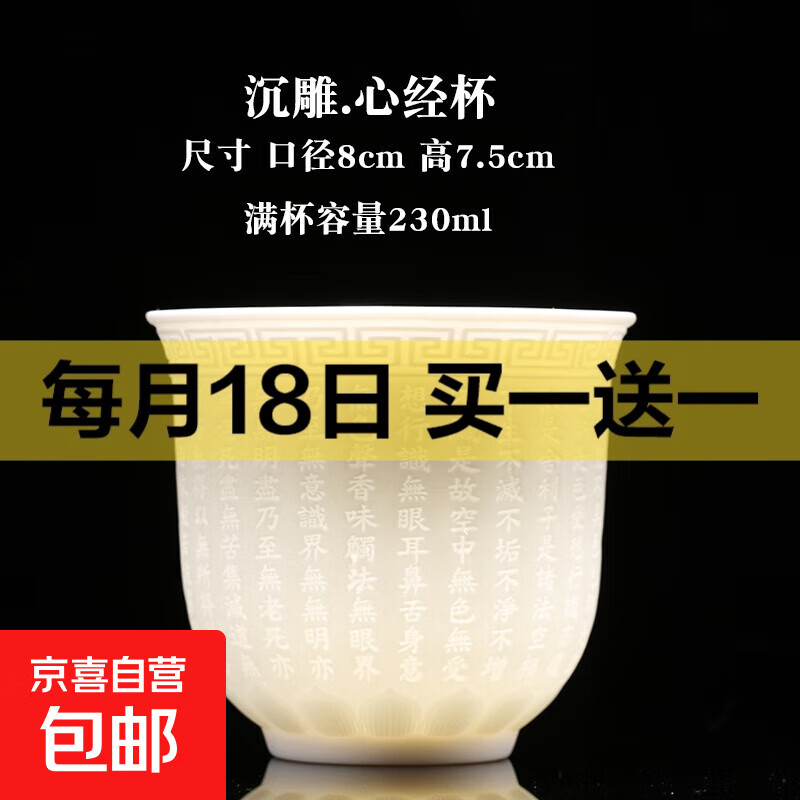 德化白瓷心经杯羊脂玉个人杯茶具陶瓷主人杯品茗杯功夫茶杯单杯大 心经杯*1-200ml
