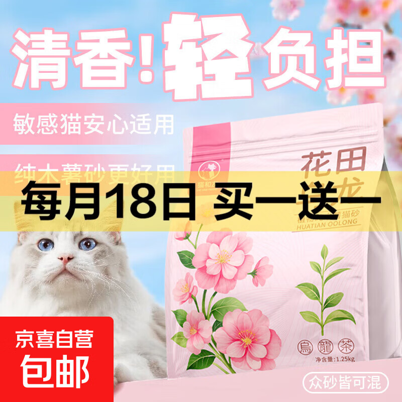 【京东上门】木薯猫砂花田乌龙低尘除臭结团不沾底抗菌无粉尘家用 【花田乌龙】纯木薯砂2.5斤