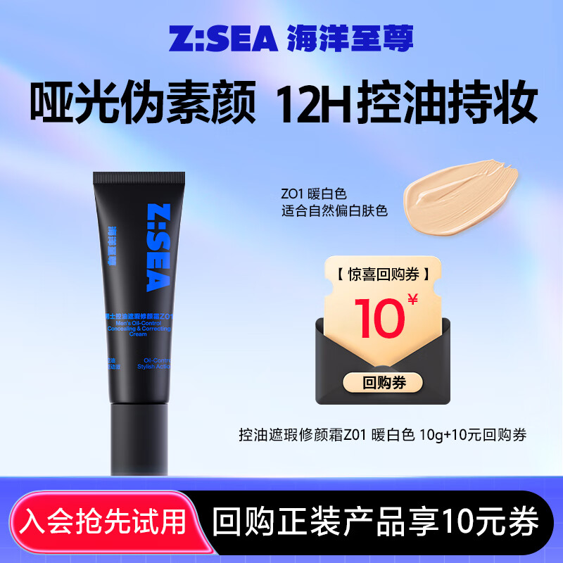 海洋至尊男士素颜霜遮瑕膏偏白肤色Z01(10g)保湿控油提亮面霜试用旅行装