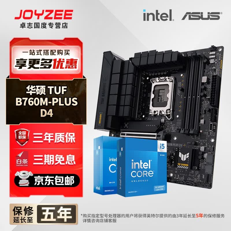 华硕B760 主板套装搭英特尔i5 13490F/14600KF/12600KF/12490F 主板CPU套装 华硕TUF B760M-PLUS D4 I5 14600KF盒装
