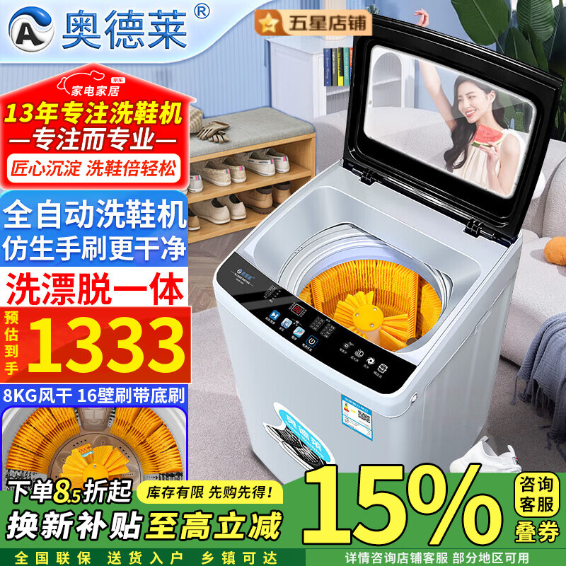 奥德莱(AOD)【换新补贴15%】洗鞋机全自动洗脱一体家用风干烘干全自动刷鞋机滚筒洗鞋子擦鞋器洗鞋神器一体机 8KG全自动家用风干升级版16壁刷+底刷灰白色波轮