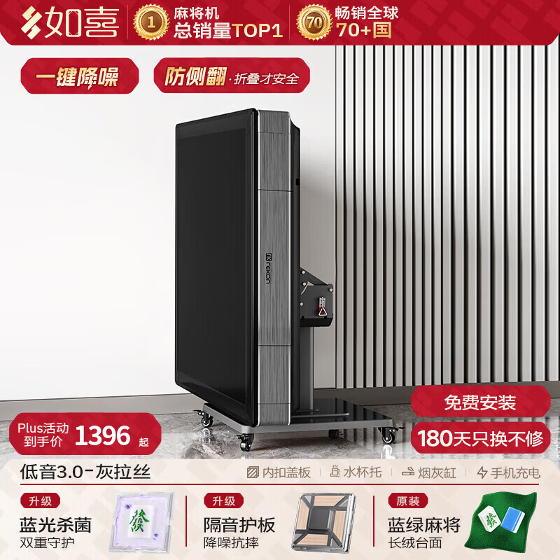 如喜【防侧翻20万次不卡牌】麻将机全自动餐桌低音家两用一体折叠电动 23【包安装】低音3.0一键降噪防侧翻-蓝绿-绿绒-灰拉丝 请联系客服选择麻将牌大小