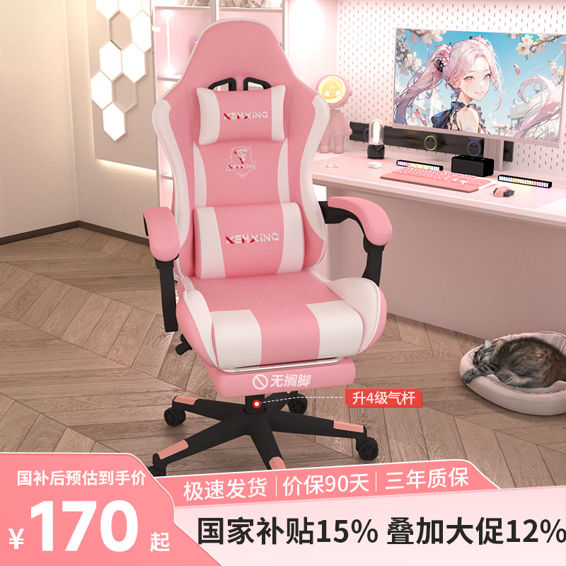 科幻猩电竞椅电脑椅子休闲舒适久坐大学生宿舍家用办公可升降座椅躺椅 樱花粉(升4级气杆)-无搁脚 联动扶手